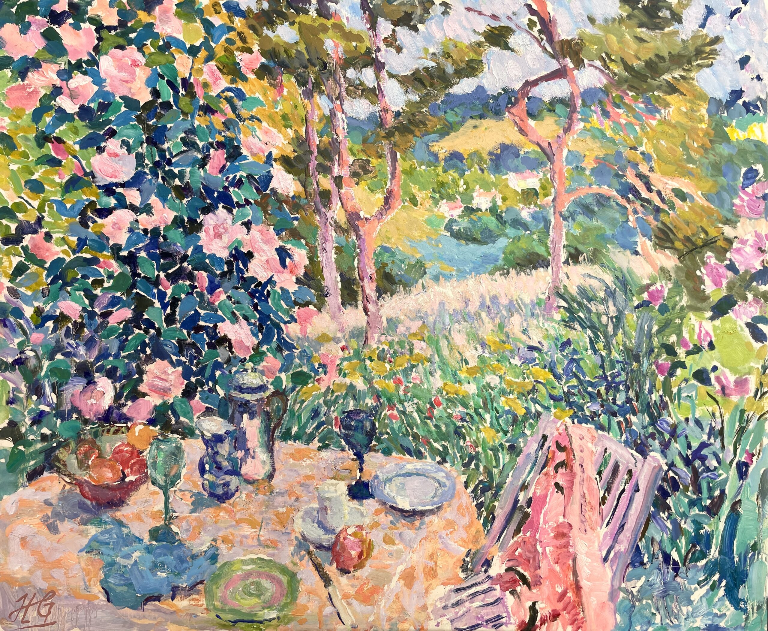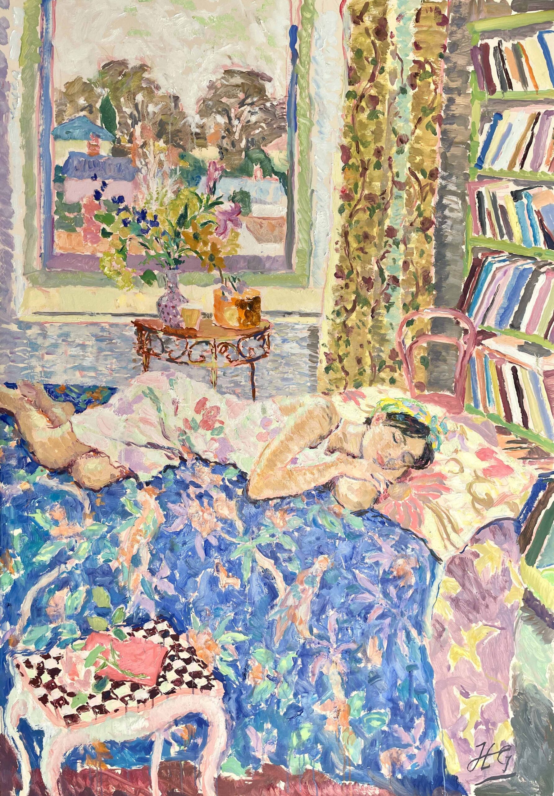 Grenville refers to himself as a romantic, but acknowledges a fascination with pattern and color that places him in the tradition of Henri Matisse. The figure subjects and the everyday objects that surround them in his paintings express joy in life, light and color. Less evident, but equally important, is a feeling of intimacy that recalls Matisse’s contemporaries, Pierre Bonnard and Edouard Vuillard. It is here that we see Grenville being influenced by the principles of Les Nabis – a group of young post-impressionists, avant-garde Parisian artists of the 1890s who influenced the fine arts at the turn of the century. Bonnard, Vuillard and Maurice Denis became the best known of the group. One of Les Nabis’ goals was to integrate daily life into their paintings as we see Grenville doing with such grace and sensitivity. The Nabis approach to cover a flat surface with colors assembled in a certain order is another principle Grenville follows. Layers of feeling peel back to disclose a spiritual intensity. In the artist’s words, “the world around us becomes a poem revealing something about how it feels rather than how it looks.” Grenville also describes himself as a colorist. His palette is bright and jaunty: lemon yellow, violet, mauve and pale blue are colors that appear regularly in his paintings. “The sea does not have to be the blue that you saw,” he explains. “It can be pink or it might be red or it might be violet. There is this sense that we can use color as a tool for linking the viewer with the emotional experience of being in the landscape.” Several years ago, Grenville and his family moved from London to the “Red House” in Waveney Valley, Suffolk. Although the house, dating to 1650, still had its lovely Georgian façade, beautiful old shutters, and many other period details, Grenville was at first immobilized by the sheer scale of the renovation; however, his essential optimism and passion for color, so evident in his art, carried the day and he was soon painting the interior peacock green, duck egg blue and violet – bright, bold hues the Georgians would have used. The rooms of the “Red House” have provided the backgrounds for most of Grenville’s interior and still life paintings. The nearby Suffolk coast and water meadows inspire his landscapes and seascapes. Grenville paints almost ceaselessly in his vast garden studio, which he shares in summer with his many students. In teaching, Grenville finds a way to give back. “I find teaching incredibly stimulating and rewarding,” he says. “It takes me out of my internal world.” In addition to teaching, he is a gifted lecturer with an extensive knowledge of art history and a writer whose articles on painting appear regularly in The Artist Magazine. Looking at his work from the early 1990’s, Grenville is surprised at how much it has changed, from the dark earthy tone of his period in London, to the bright, cheerful, color palette he uses today. Grenville’s is an optimistic world, a place of reverie full of color and light.