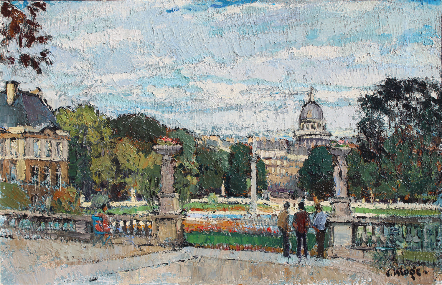 In Kluge’s work, we can see his adoration for the city of Paris. His buildings are rendered not only with the realism and precision of an architect, but with the affection and happiness of a man fulfilling his artistic dream. His firm drawing and well-constructed forms are bathed in an atmosphere of subtle colors. Indeed, every painting is like a love letter to the small, daily scenes of Parisian life. French art critics title Constantin Kluge’s work ‘poetic realism.’ He enjoyed painting and communicated that joy to the beholder.