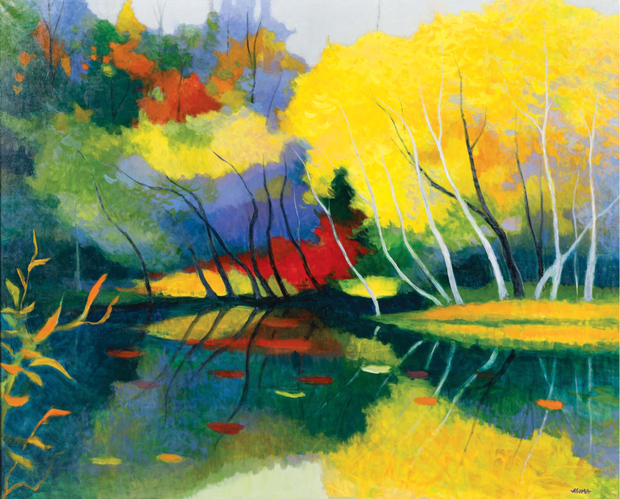 The seventies proved to be an emotional time for Asoma, providing him with inspiration for his works. He moved to a small village, Garrison, outside of the city where he was able to connect with nature. His insatiable curiosity for color allowed his paintings to reveal a remarkably adept portrayal of the changes of the seasons.  Sudden bursts of pure, brilliant color with splendid differences of touch and tone, exemplify his natural originality and closeness with nature.  Luminous palettes define his works, while lightly feathered textures translate admirably to the glory and jubilant majesty of nature.