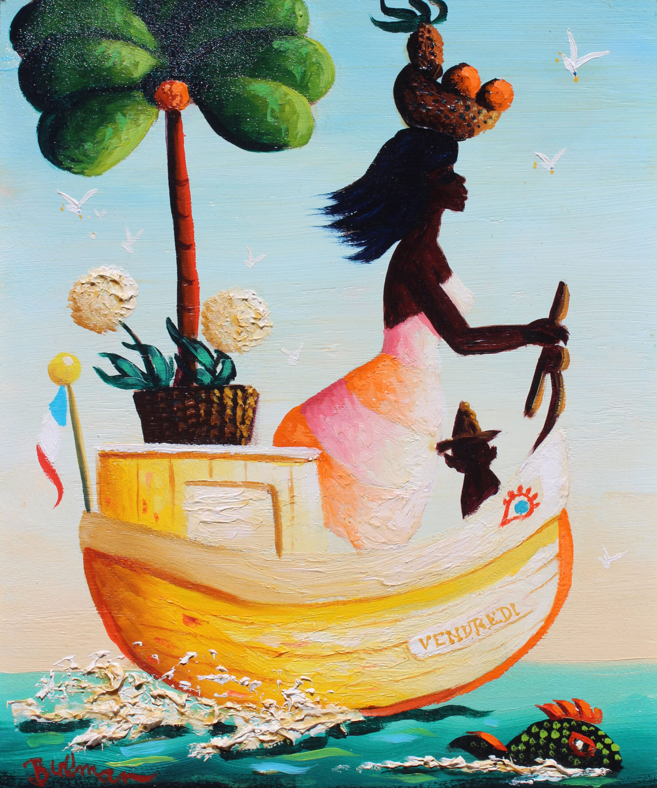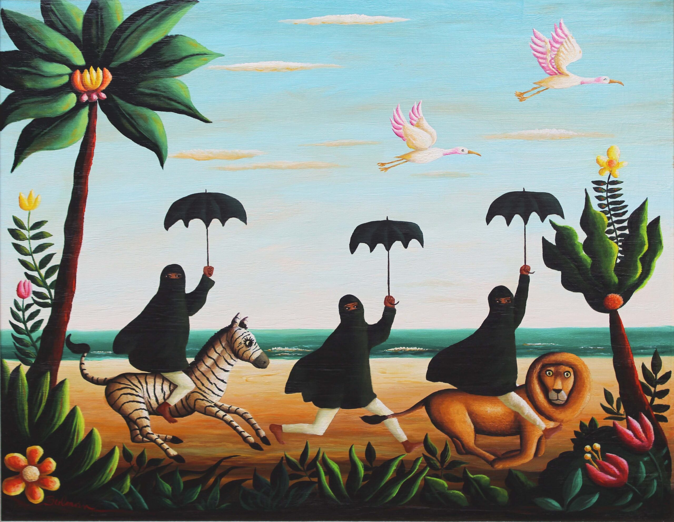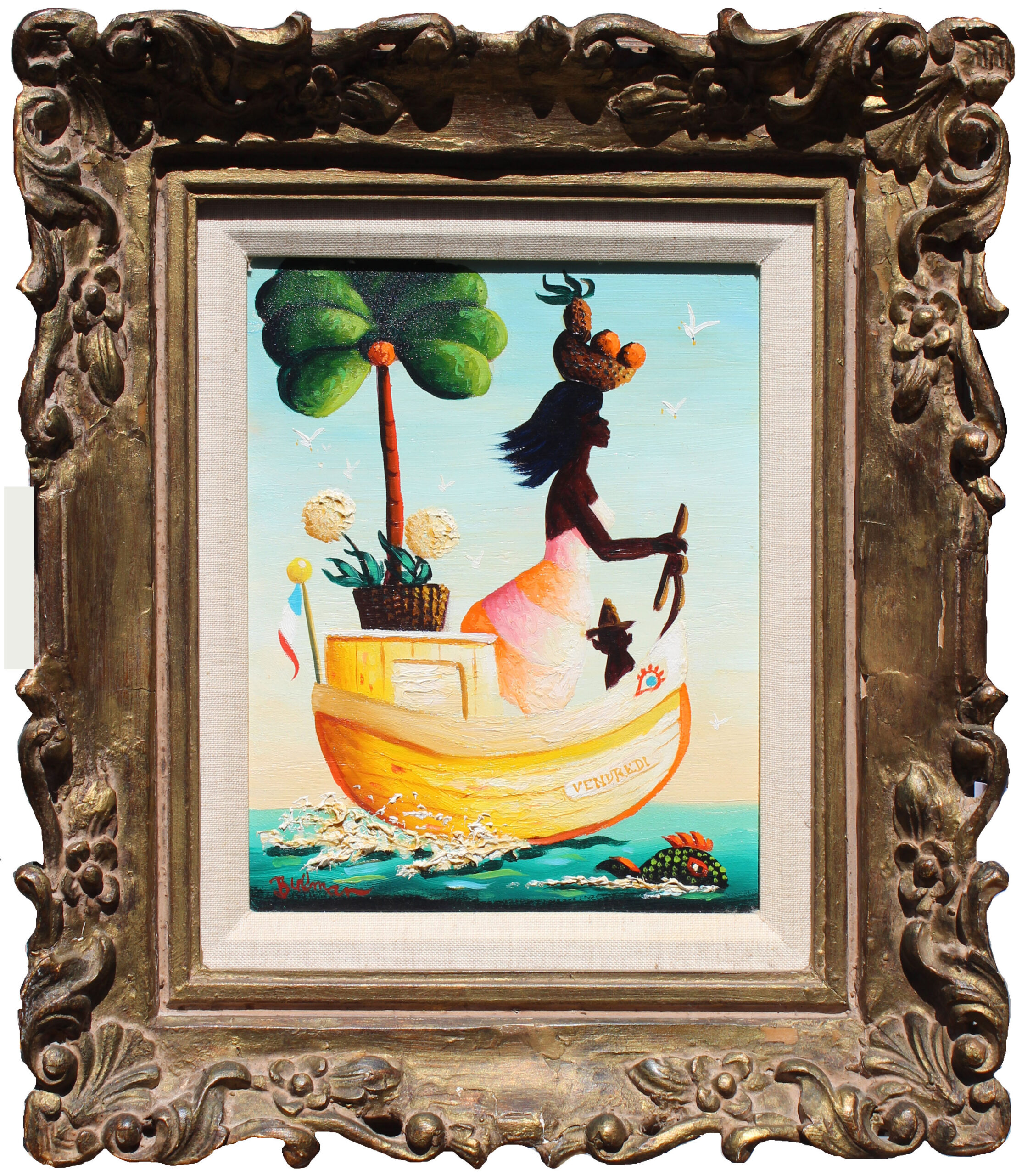 The French Surrealist painter Henri Rousseau was a big influence on Bulman. Upon his return from Haiti, he began creating paintings of the jungle with its rich flora and fauna populating them with lions, tigers and monkeys with a dream-like sensibility. Prominent residents of Palm Beach including the Duchess of Windsor, Marjorie Merriweather Post and Robert F. Kennedy began collecting his work and others were quick to follow. Bulman’s paintings, especially his jungle scenes, are highly sought after by collectors of his art.