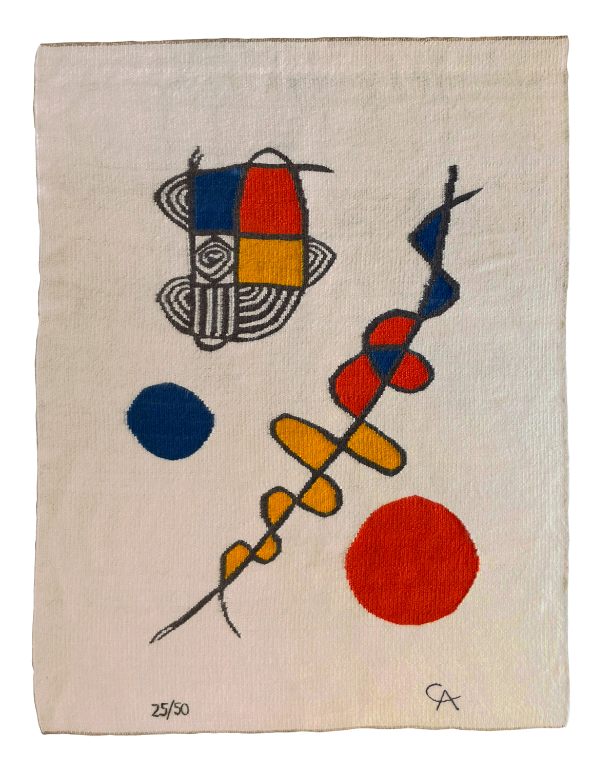 Alexander Calder was a world-renowned abstract artist with a distinctive, unique style. He was mostly recognized for his invention of the mobile and his monumental stabile sculptures, but Calder also worked in various other mediums, both traditional and experimental. This exhibition focuses on Calder’s Maguey fiber tapestries supported by a selection of multiples from the Findlay Galleries collection.