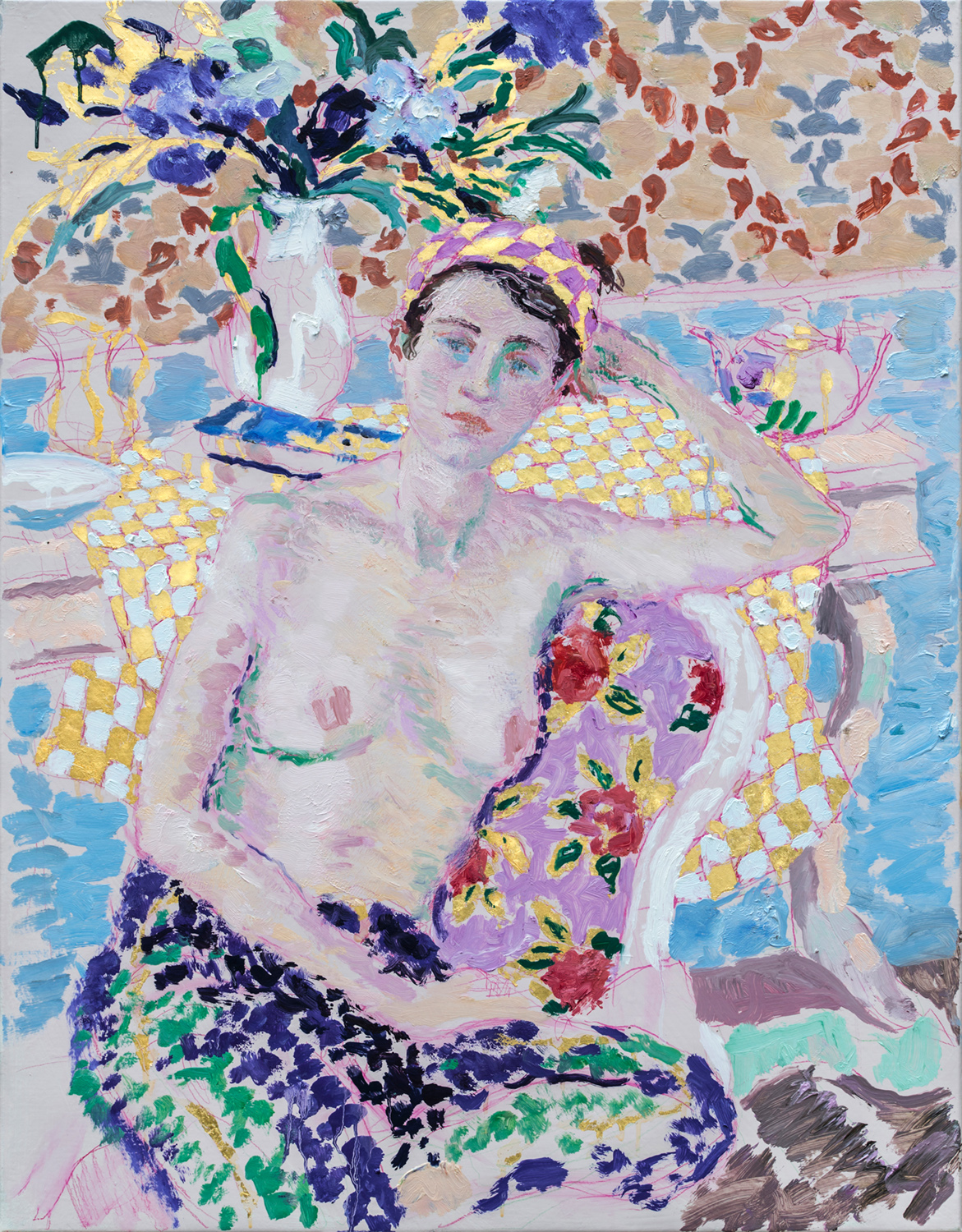 Through the arrangement of shape, line, pattern, and color, I try to conjure the lyrical and the dreamlike, a place at peace with itself. The still life and figure paintings do not generally represent an actual moment in time but are rather the result of a process of reflection, recollection, and reinvention, a distillation of human experience. The flowers in the jug or the nude on the bed belong not to now, but to all time, just as the abstract elements of color and light are timeless and connect us to both the past and the future, to the visible world, and to the invisible.”