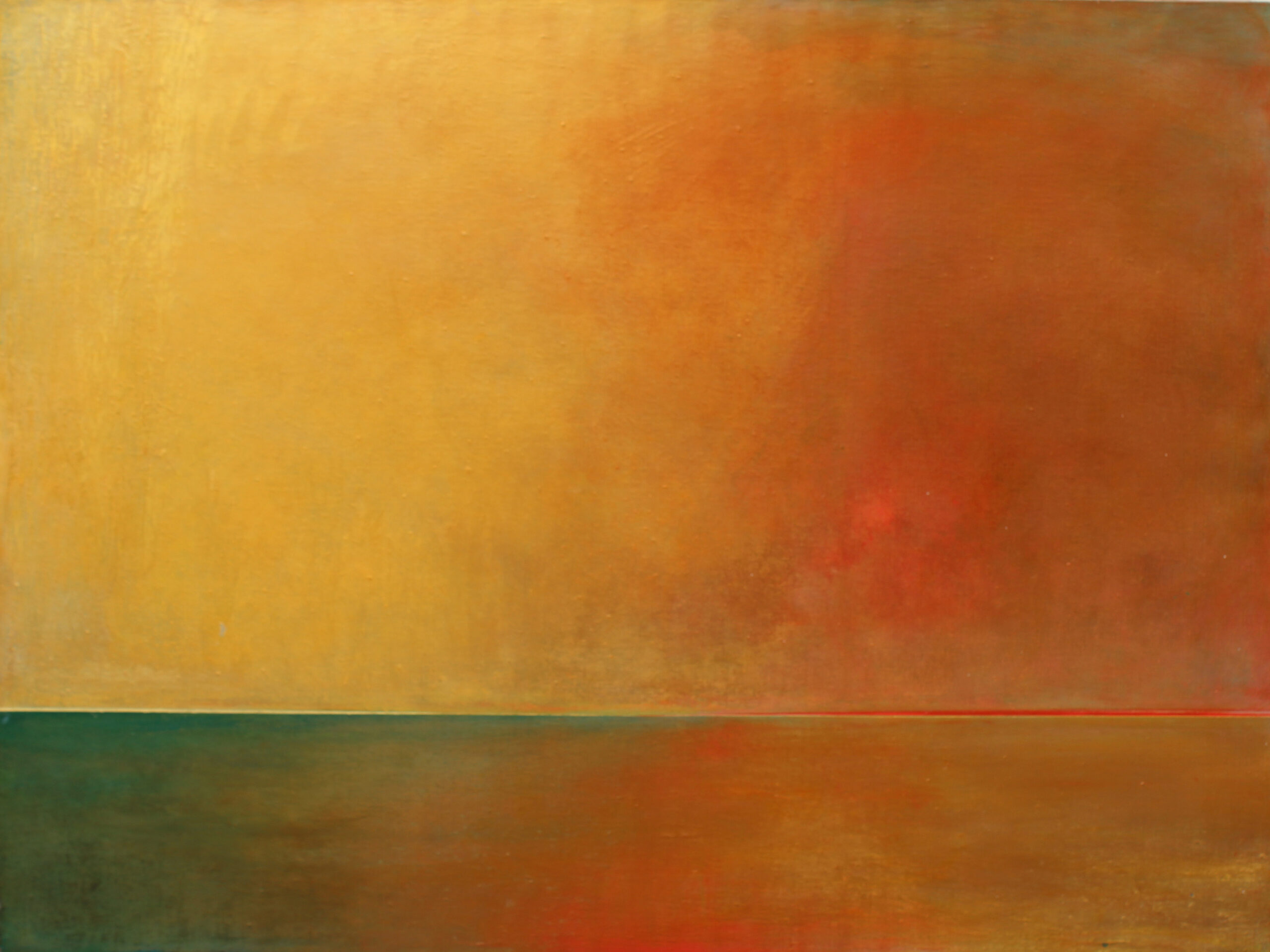 My influences include Turner, Constable, Rothko, and Helen Frankenthaler, with Dan Flavin’s minimalist horizon line playing a crucial role in my compositional approach. Other inspirations range from Winslow Homer and George Inness to Odilon Redon and Leonor Fini. I also draw from unexpected sources—Amelia Earhart, Madame Curie, Carl Sagan, and the Hubble telescope—exploring light, space, and the infinite. Sacred geometry and the golden ratio further shape the proportions of my horizon lines.