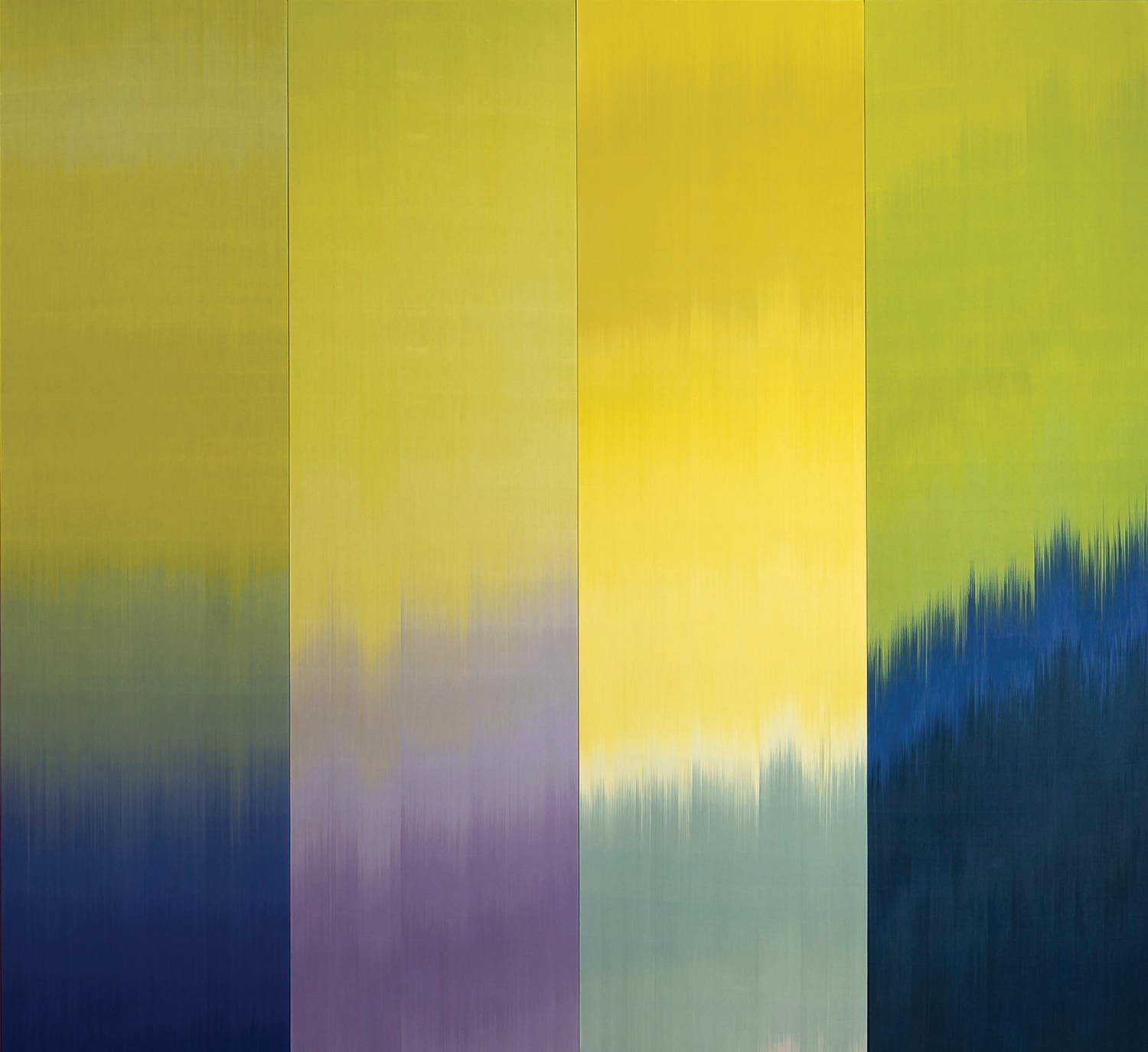 British Contemporary artist Ptolemy Mann applies a unique approach to the creation of her artworks. Aesthetically, they reflect her full and deep understanding of the principles of the Bauhaus school as well as the nuances of color theory. The result is an intelligent yet sensitive approach to a process filled with detail and painstaking levels of craftsmanship. Her time-consuming and unique approach has evolved over a twenty-five-year period. Exquisite dynamics of color move across their fine surface, creating a painterly sweep. The term ‘Chromatic Minimalism’ has been applied to her work, and Abstract Expressionism and architecture heavily influence her.