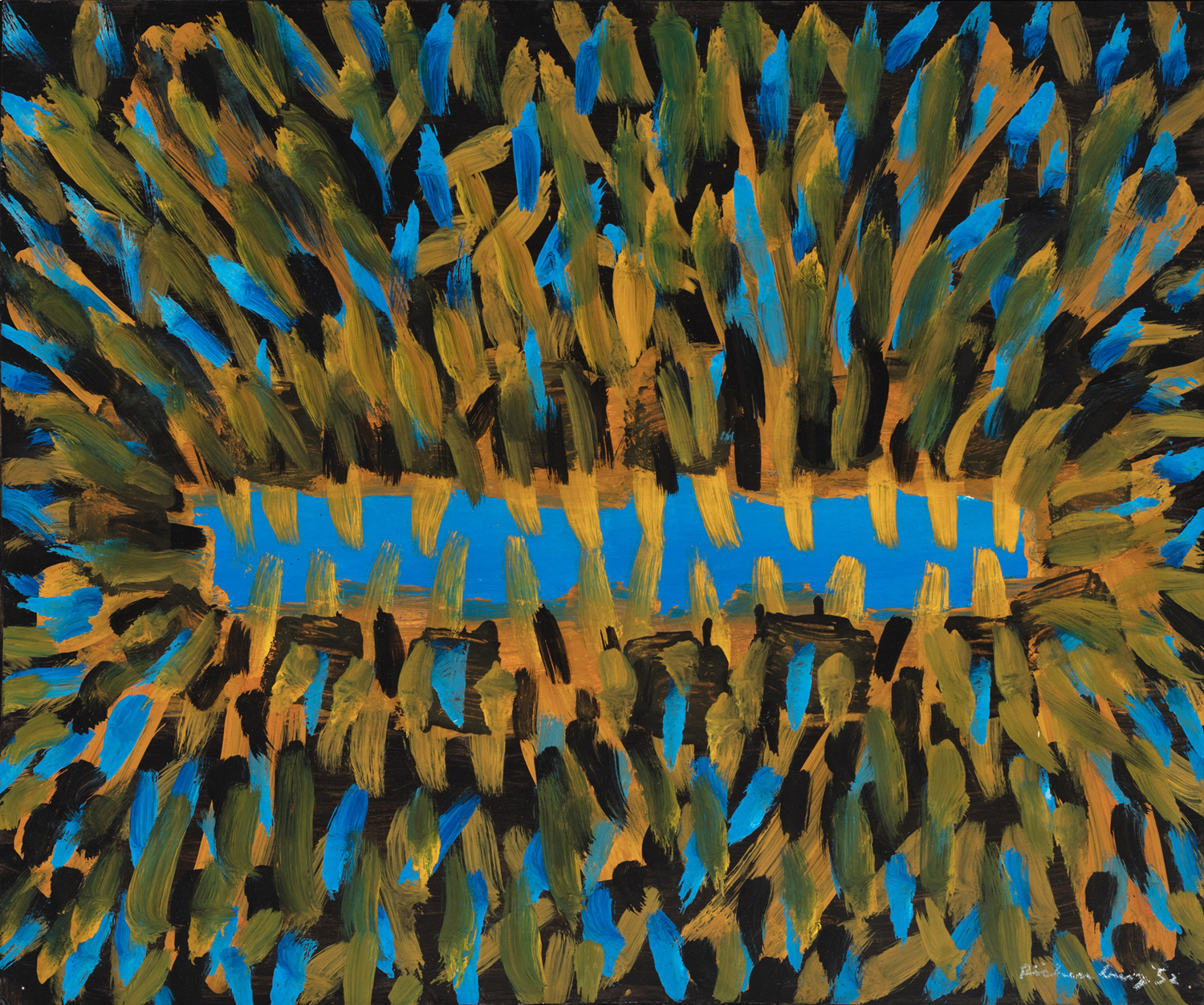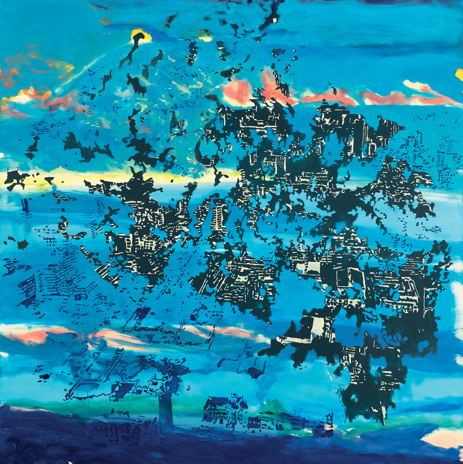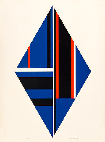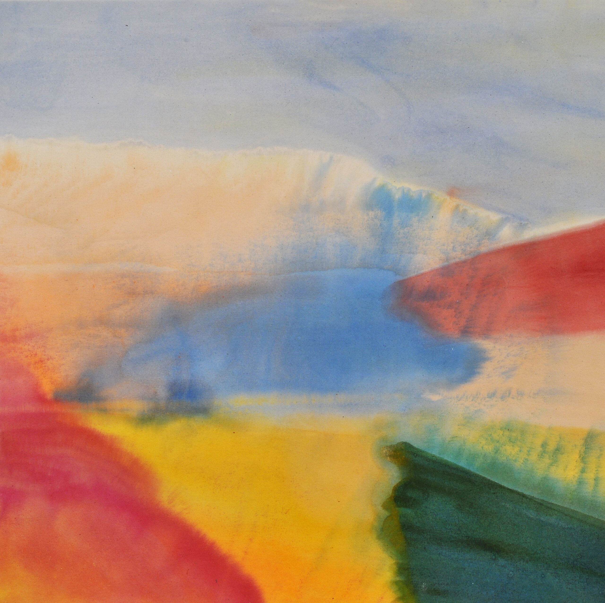 Something Blue includes a diverse range of artists who have applied the color through various mediums and styles. As a ubiquitous color present in our skies and seas, blue is necessary for representational work, such as Jean Dufy’s Le Pont Alexandre III, which uses multiple hues of blue to depict the sky and the Seine while emitting a Fauve-inspired energy. Blue is used to a similar effect in Jean Jules Cavailles’ Les Petroliers a Lavera, which depicts oil tankers floating on a vast expanse of blue water on an idyllic Mediterranean day. In other examples, the hue is used abstractly, such as Ptolemy Mann’s Alqa (Between Orange and Blue), a painting that brims with undulating fields of blue, hitting an emotional note amongst an emotional medley of vibrant colors. Its abstract application can also be found in Ronnie Landfield’s Freedom on High, where acrylic paint is diluted with water to create a complex, serene piece that channels landscapes and nature. Additional artists including Gordon Onslow Ford, Robert Natkin, Henrik Simonsen, John Ferren, Mary Sipp Green, and Ilya Bolotowsky who all offer their interpretations of the vast possibilities inherent in the color blue.
