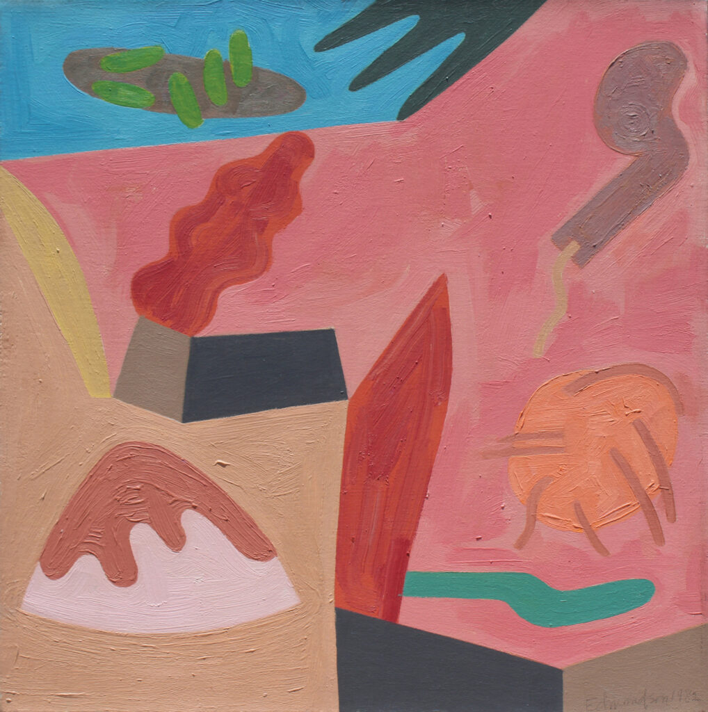 A California native, Leonard Edmondson, painter, printmaker, educator, and author, was born in Sacramento in 1916. His college studies began at the Los Angeles City College and continued at the University of California at Berkeley where he graduated in 1942 after earning his B.A. and M.A. in Fine Art. Between 1942 and 1946, Edmondson served in the U.S. Army in Military Intelligence. During these years, he traveled through Europe where he saw a body of work by Paul Klee. Immediately after the war, he explored the collections of the Louvre. Returning to California in 1947, he accepted the first teaching position of his distinguished career at the Pasadena City College. Concurrent with beginning teaching, Edmondson became absorbed with Klee and Kandinsky, studying Klee’s Pedagogical Sketchbook and Kandinsky’s theoretical writings. The year 1951 was pivotal for Edmondson as he made his first etching during a course taught by Ernest Freed and his first solo exhibition was held at the Felix Landau Gallery in Los Angeles. The following year his first solo museum show was mounted at the de Young Museum. Edmondson’s career included professorships at the Otis Art Institute, University of California at Berkeley, Pratt Institute, and the California State University in Los Angeles where he remained until his retirement in 1986. An enumeration of his numerous awards and fellowships would furnish a roster equal in size to that of the exhibitions in which he has been included. In 1970, he published his technical treatise Etching, which is still a valuable reference to printmakers. A few of the repositories which include his works are the Bibliothèque Nationale, Cornell University, Detroit Museum of Art, Metropolitan Museum of Art, National Gallery of Art, New York Public Library, and the Worcester Art Museum.