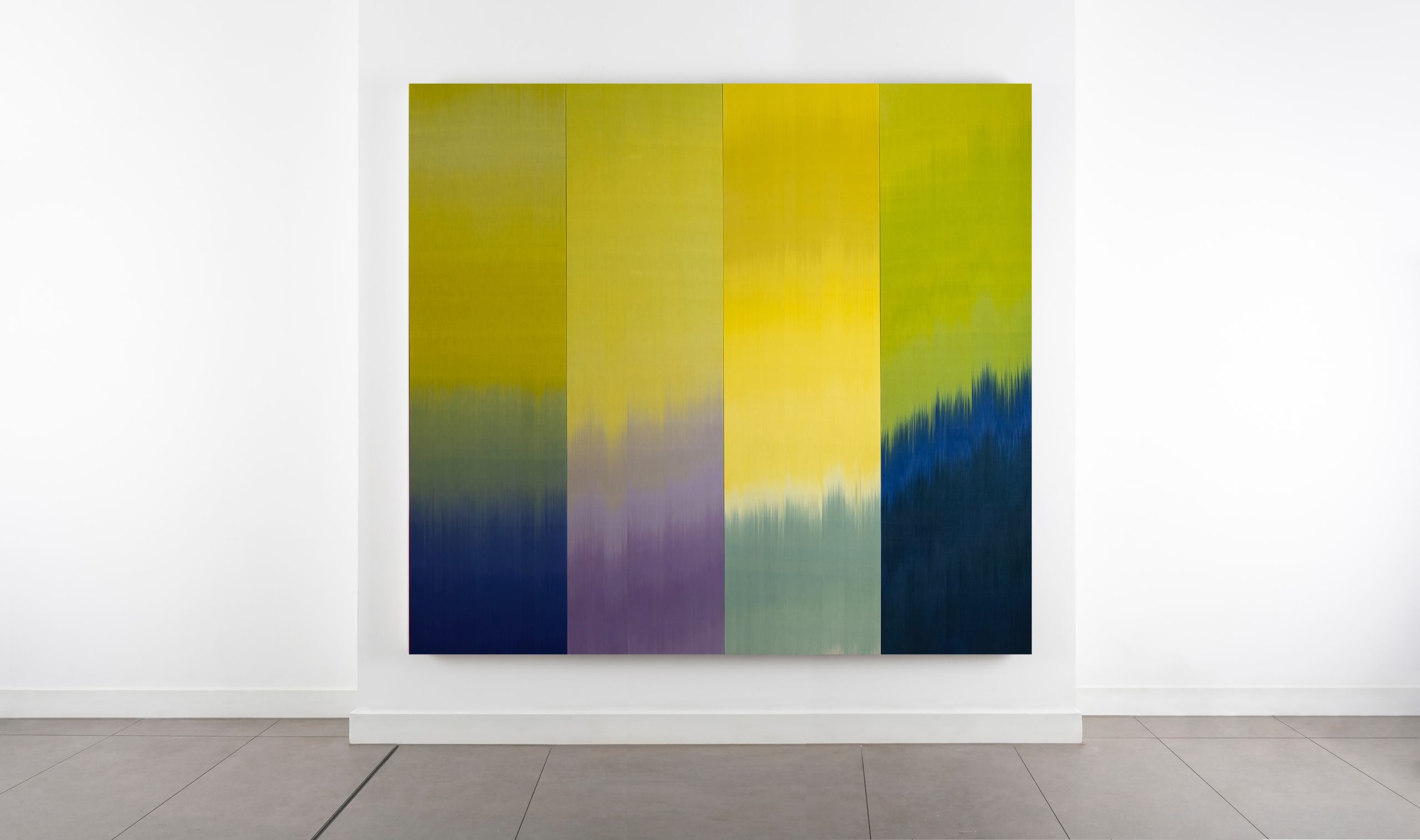 Mann graduated from her formal artistic studies at Central Saint Martins and the Royal College of Art. Since 1992, she has been creating architectural and chromatic artworks for private, public, and corporate clients using her signature hand-dyed and woven technique. Her time-consuming and unique approach to creating her artworks has evolved in the past twenty years; she also creates large-scale acrylic and gouache paintings on Arches paper and canvas. Mann states, “In complete contrast to the exquisite slowness of the woven artworks, these paintings are punches of spontaneous, emotional color.” She expresses a deep sense of craftsmanship and precision and is heavily influenced by Abstract Expressionism and architecture, with the term “chromatic minimalism” being applied to her work.
